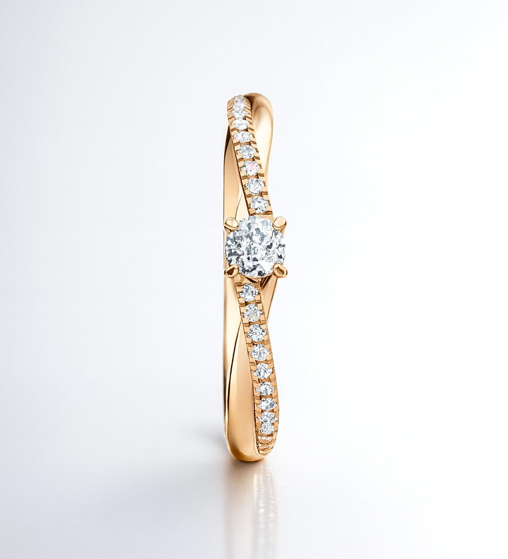 Anel Knott representa um conceito de anel clássico e intemporal. Modelo Solitário com 19 diamantes de 0,24cts de cor GH e pureza SI. Modelo disponível em ouro branco, amarelo e rosa ( de 18 e 14kts ) assim como também em platina 950.