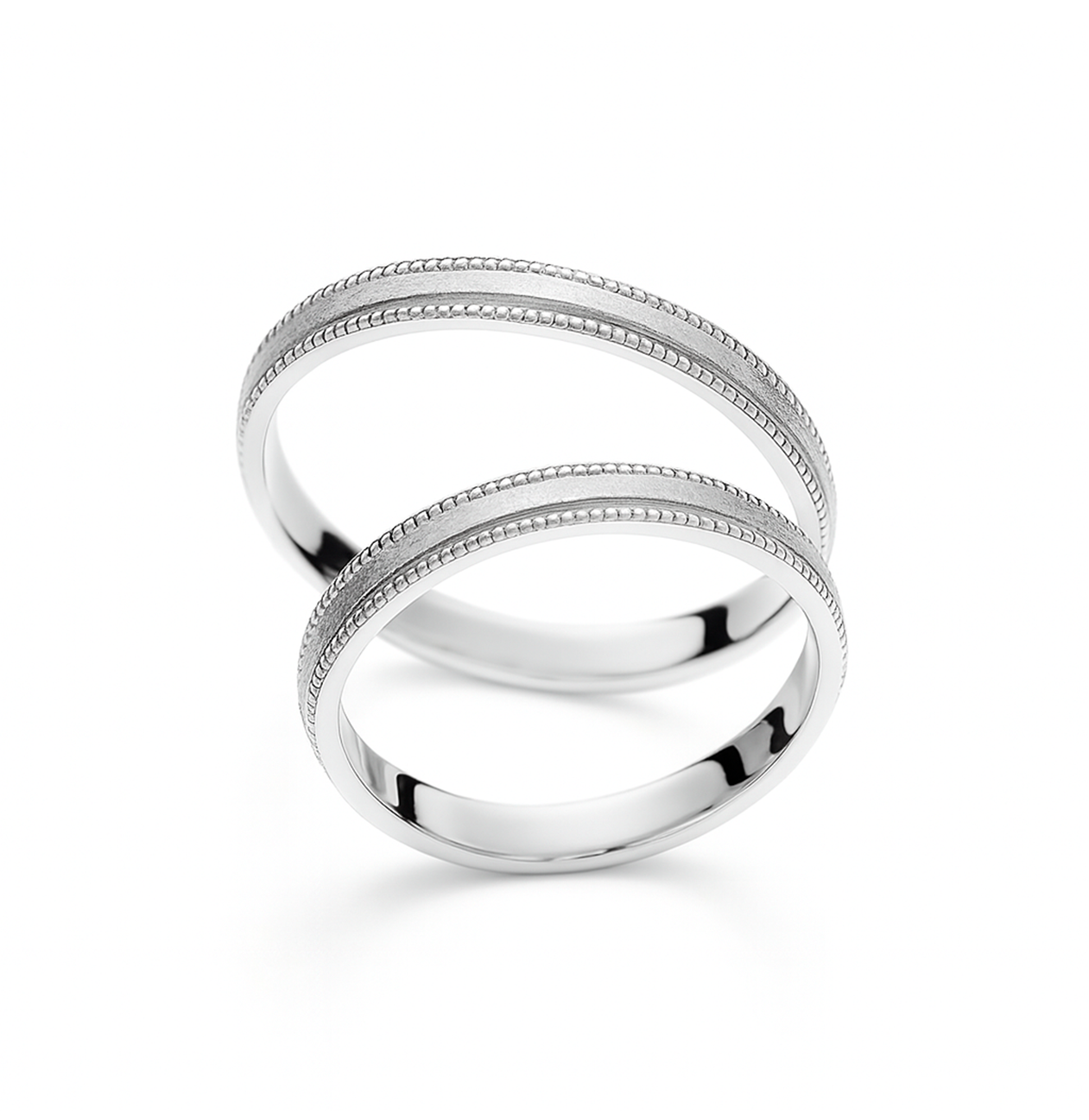 Alianças de Casamento Bordéus – A1056, em ouro branco de 14 ou 18kts, com opções entre 3mm e 8mm de largura.