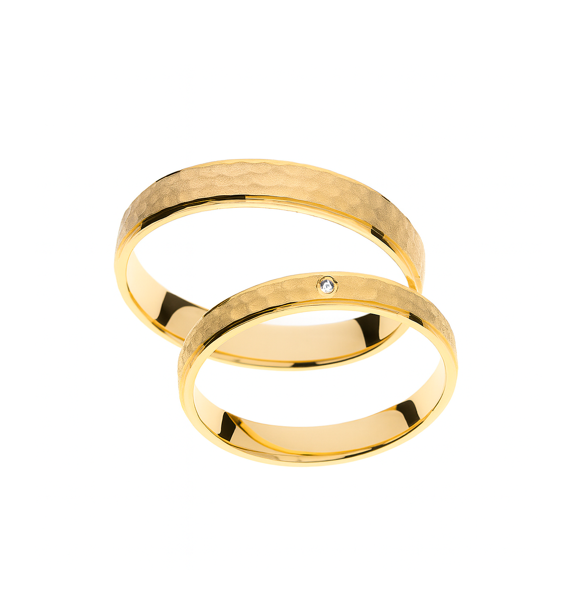 Alianças de Casamento Budapeste – F600, em ouro amarelo de 14 ou 18kts, com opções entre 3mm e 8mm de largura.